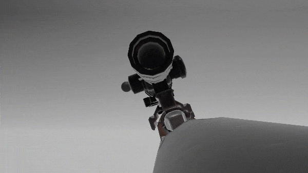 Using a magnification shader, the scope is actually functioning with a variable zoom slider using a physbone next to the scope that you can pull with your hand.