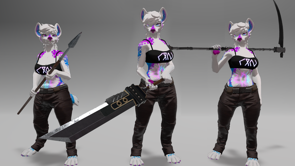 Main avatar used for promotional material is Hyenid by Alber: https://alber.gumroad.com/l/Hyenid